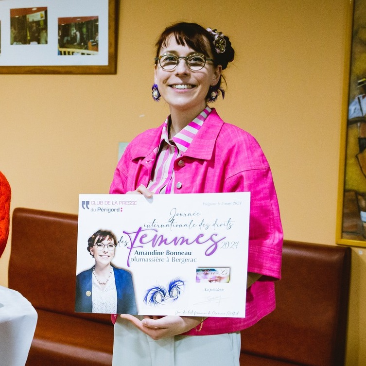 Immense fierté ! J’ai remporté le Concours Atelier d’Art de France Nouvelle-Aquitaine avec « Les Envolées » et me dirige vers la finale nationale en juillet ! J’ai ouvert mon entreprise en 2012 et je me suis spécialisée en plumasserie en 2017. Pour